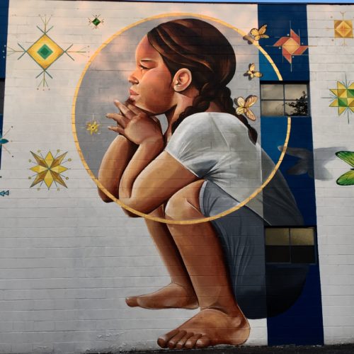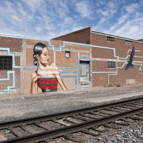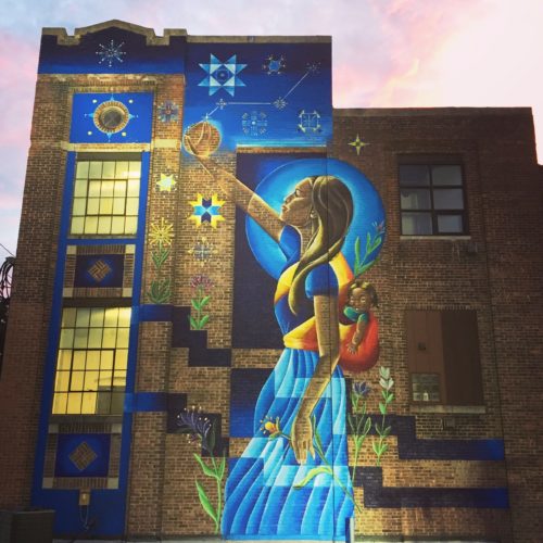 Nanibah “Nani” Chacon, is a Dine (Navajo) and Chicana artist. Most recognized as a painter and muralist .Nani was born in Gallup, New Mexico and grew up both on both the Navajo reservation and in New Mexico. Her most notable works have been with in the public arts sector, in which she has a cumulative experience of over 20 years. She began a prolific career as a graffiti writer, and continued this practice for the next 10 years. In 2005, she began exploring other mediums and developed strong aptitude in painting, Illustration and design. In 2012, she returned to the public eye creating work on walls. This work transpired to creating murals and large scale public works . A return to working on walls and in a public setting was a natural progression that facilitates the content of her work as well as personal philosophy that art should be accessible and a meaningful catalyst for social change. In 2003 she received her Bachelor in Education from the University of New Mexico,. Community based arts and educational integration are also a key component the work Nani creates. Her work has been recognized for its unique style and attention paid to site specificity. as well as the integration of socio political issues affecting women and indigenous peoples.