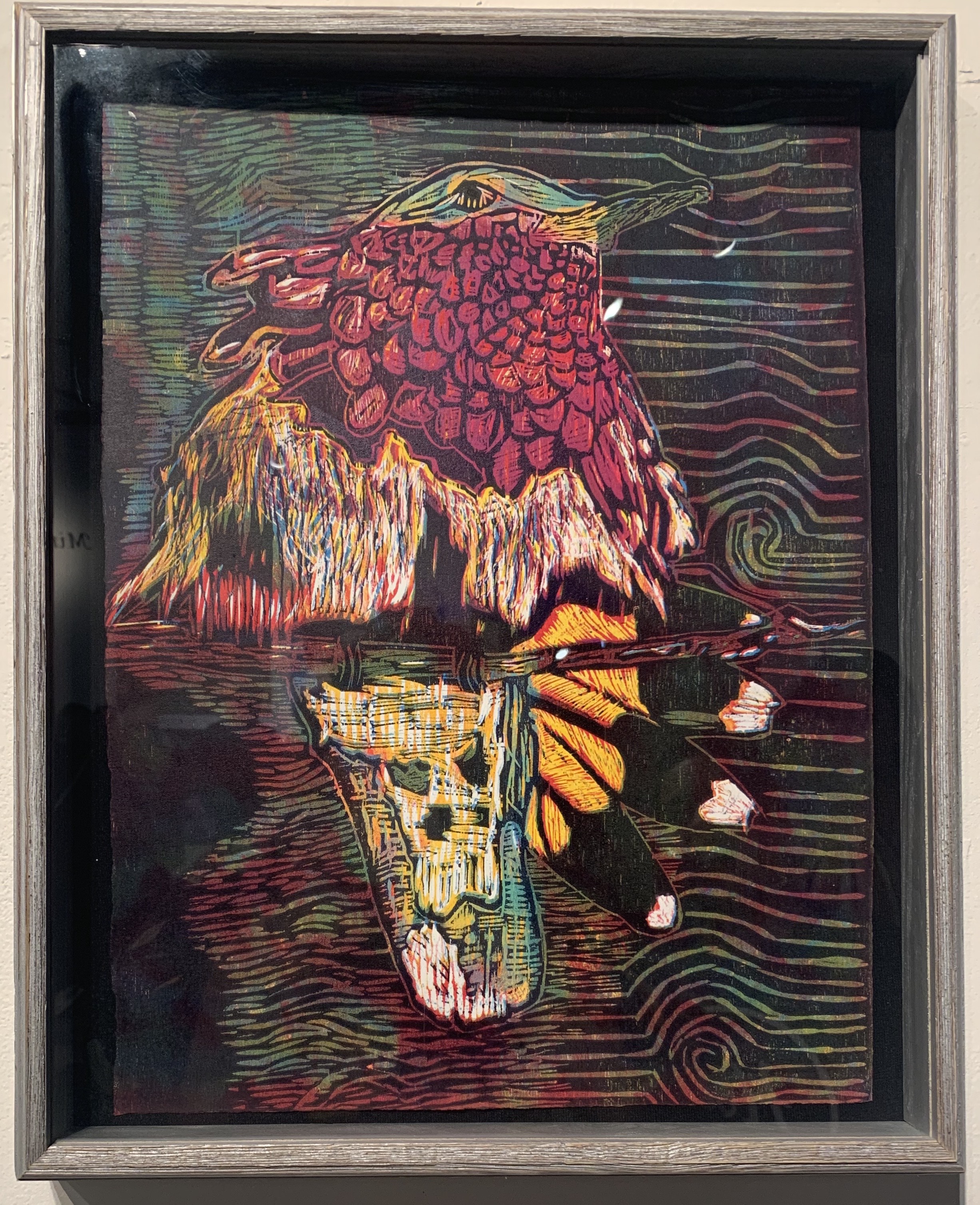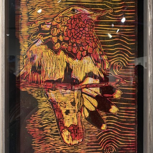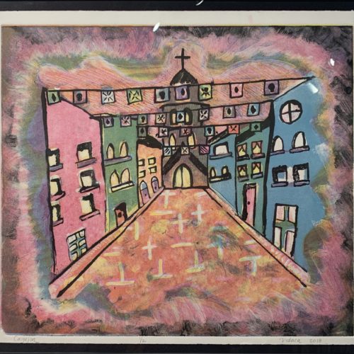 Maria Lilia Vidaca is a Mexican-American self-taught artist who was born and raised in downtown Los Angeles, CA. She was brought up surrounded by graffiti walls, Mexican stereotype racism, gang culture, and rich Mexican heritage. She never considered art as a lifestyle until she moved to Albuquerque, New Mexico during her teen years. During her college years, life took an unexpected turn; homeless and a college dropout she got her first job cleaning yards then got her current position at APS. Soon afterward enrolling at Central New Mexico Community college, opened new perspectives in the art world. She had the privilege of being in two group exhibitions; Mindscapes at Factory on 5th and Catzilla at CNM/Animal Human Society. Her current media is printmaking, linocut, intaglio, etching, and monotype. Maria’s current work in progress is called El Juego de la Vida which is inspired by the Mexican game called Loteria. this work can be described as cultural pictographs for today’s generation.